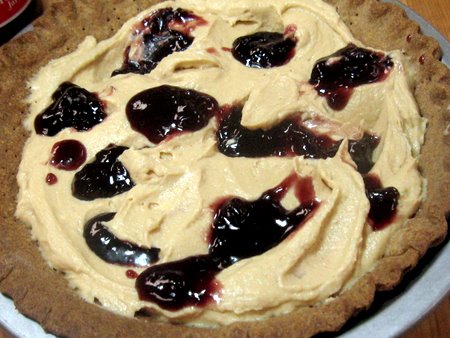 For another tasty version, try Matt's PBMJ pie. Matt is the “new guy” here in customer service, and we just love him. He's a great baker in his own right, and loves to talk food. He suggested the original pie would be even better with a big blob of jelly, so I decided to give him his wish.