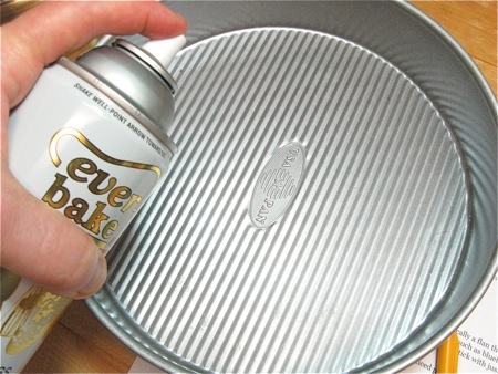 Lightly grease a 9” round cake pan, one that's at least 2” deep.