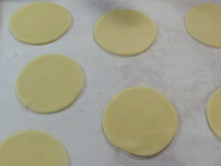 Roll your chosen cookie dough out to between 1/4” and 3/8”. Too thin and your cookie will shatter when served, rather than breaking crisply.