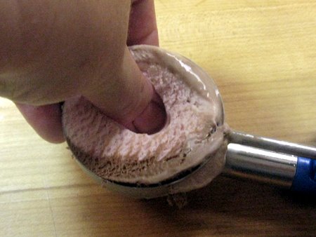 Hollow out a depression in the scoop with a spoon or your thumb. No licking, please!