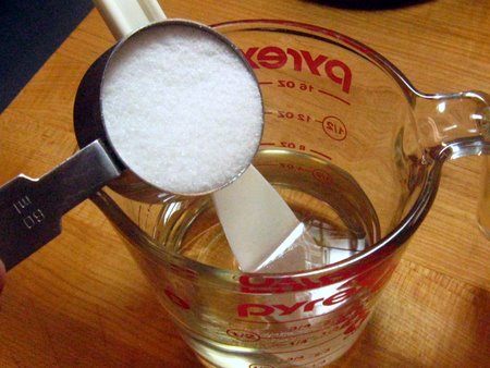 To start, dissolve 3/4 cup sugar in 1/2 cup boiling water. Stir until dissolved.