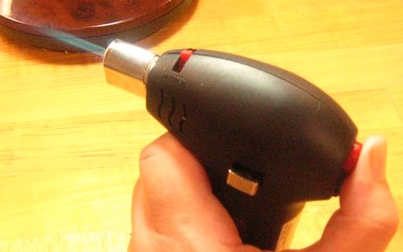 The nice safety features of the torch are that if you remove your thumb, it will instantly go out, and lock. You'll need to repeat the whole process to get a flame again.