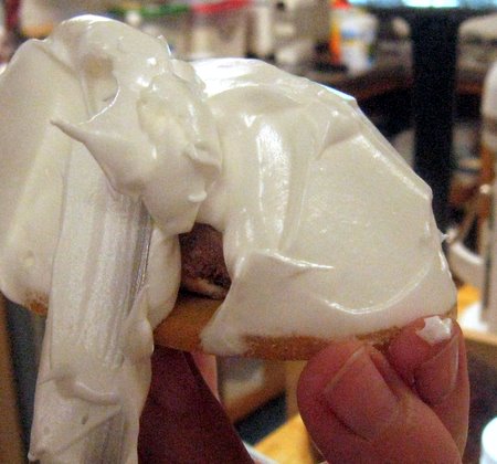 Holding the cookie, apply a generous amount of meringue and spread to cover the ice cream. Did I mention this time how much I use my nylon spreaders? They're perfect for spreading anything.