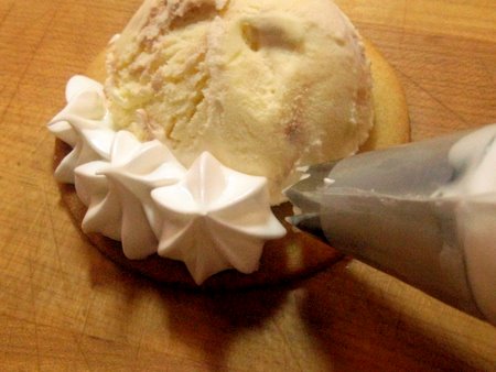Be sure that the meringue completely covers the ice cream and seals down to the edge of the cookie.