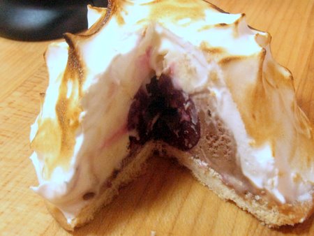 A thing of beauty is a joy forever. Toasted meringue, warm on the outside and creamy on the inside covering cold, delicious ice cream; and finally the crisp snap of the cookie to melt in your mouth. A treasure of a cherry in the center and it's truly a treat of Alaskan-sized flavor in a Vermont-sized package.