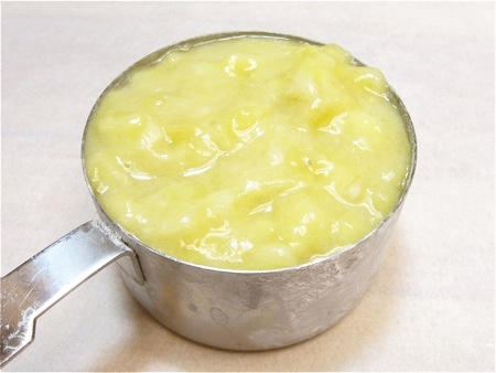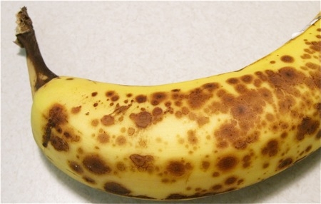 Next, the banana. Hopefully you have nice, ripe bananas like this one. The riper the banana (mottled brown, even black), the stronger the flavor.
