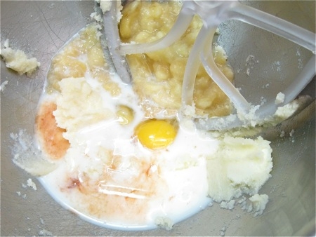 Beat to combine. It'll still be a bit lumpy, mostly from the banana; that's OK.