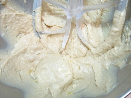 Beat to combine. You'll make a curdled-looking batter; don't bother trying to beat it smooth.