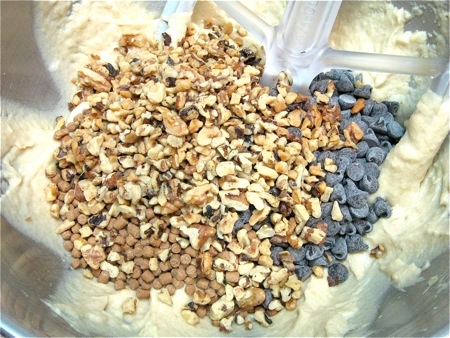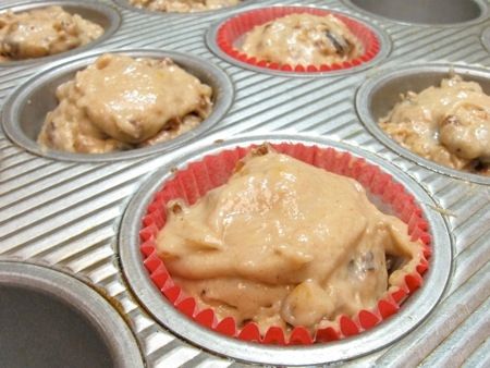 Preheat the oven to 350°F. Lightly grease 12 to 14 standard muffin cups. You'll use the larger number of cups if you include the full amount of all three add-ins: chocolate chips, walnuts, and cinnamon chips.