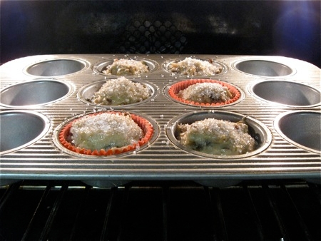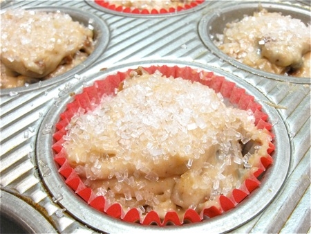 Sprinkle the tops of the muffins with coarse white sparkling sugar, if desired.