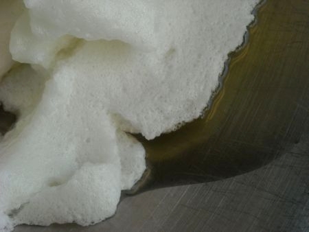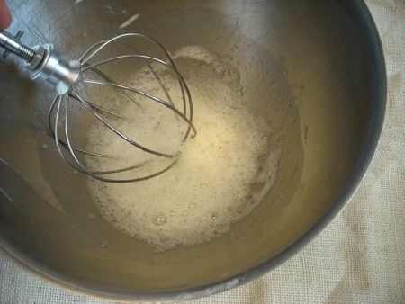 When you whip egg whites, they go through these stages. First they get foamy, which looks like this: