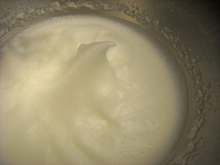 If you leave the mixer on and get sidetracked, the whites will start to look a little bit grainy, like this:
