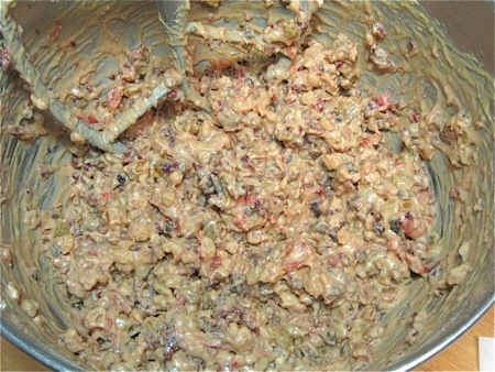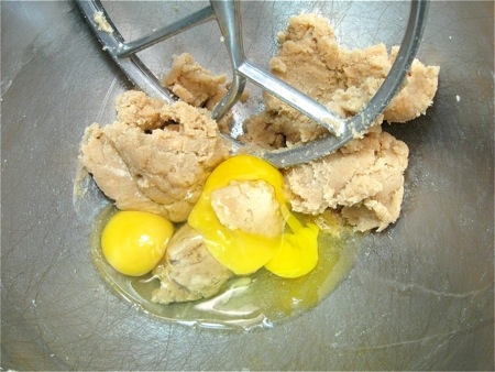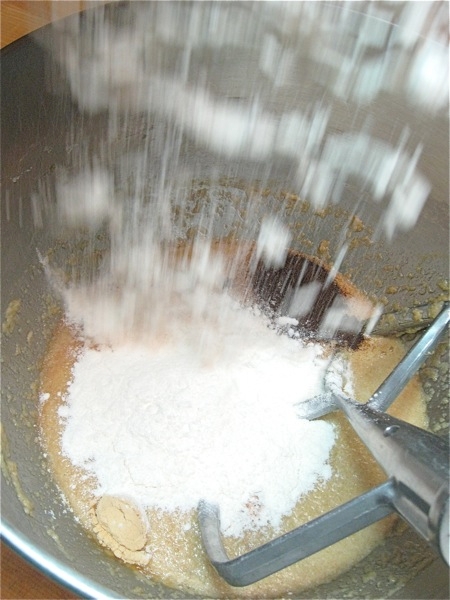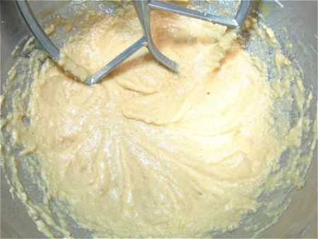 The batter will be heavy and sticky; this is best done in a stand mixer, or using a heavy spoon and lots of muscle power.