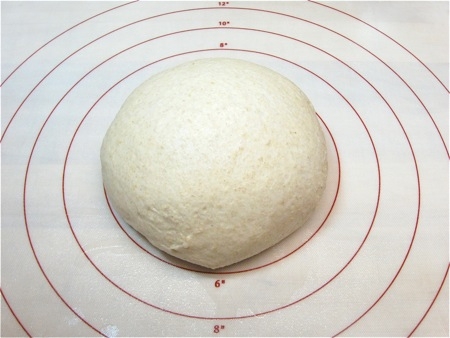 Gently deflate the dough, and place it on a lightly greased work surface. A rolling mat works well; it's pretty much stick-free, and rinses clean in warm water.