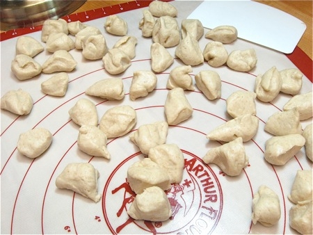 Divide it into chestnut-sized (about 1") pieces. Don't be too fussy here; the pieces don't have to be exactly the same size, nor do they need to be rolled into balls.