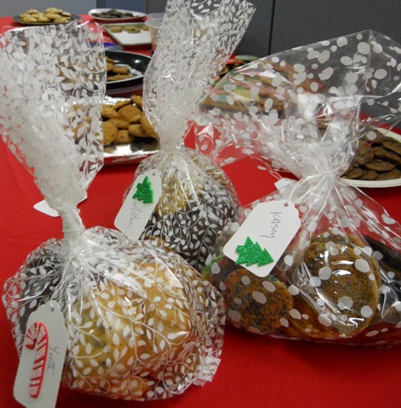 First, pick a date, time, and location, and decide whom you want to invite. Send out invitations - we emailed ours - a few weeks in advance. We invited more than a dozen people from our customer service area, and ended up with 10 guests and 11 different kinds of cookies. It seemed like a good number of both!