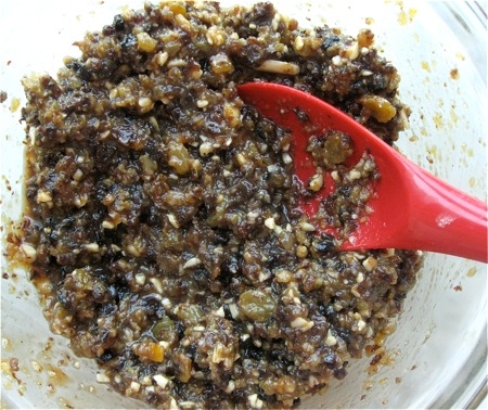 No, not THAT mincemeat. British Christmas mince is FRUIT mince. Made from raisins and currants, apples and nuts, sweetened with brown sugar and taken over the top with a generous splash of brandy, fruit mince is nicely spicy, full-flavored, and the perfect filling for tiny, two-bite tarts.