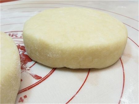 Divide the dough in half, and shape each piece into a flattened ball, or wheel.