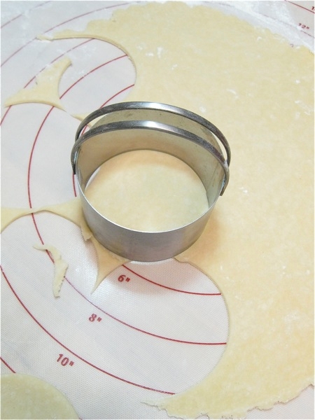 Roll out the second piece of dough, and cut rounds. Again, save the scraps.
