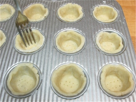 Also, I was using a 20-cup mini muffin pan, instead of a 24-cup; since this recipe makes 2 dozen mini tarts, it's best to choose a 24-cup mini-muffin pan.
