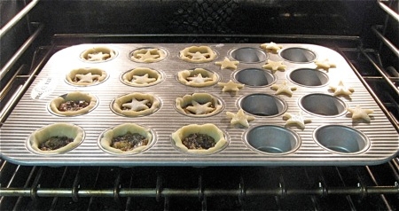 Cut stars from the dough scraps: 1 1/4" stars for the mini tarts, 2" stars for the small tarts.