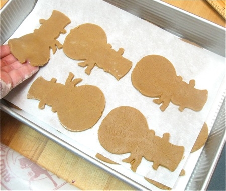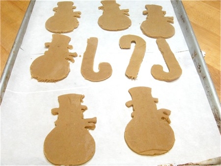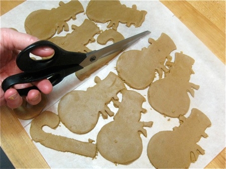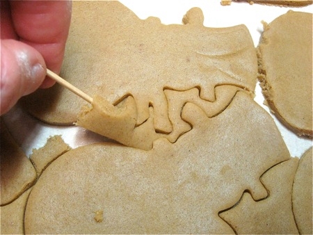 As the dough gets warmer, it gets trickier to remove the crooked, awkward pieces of dough in between cutouts; a toothpick helps.