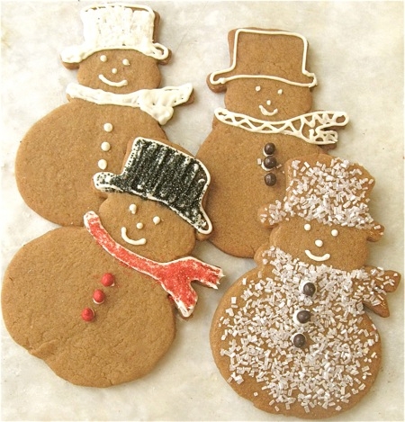 Brush the baked snowman lightly with corn syrup, honey, or maple syrup thinned with a bit of water; immediately sprinkle with sugar, shaking off any excess.