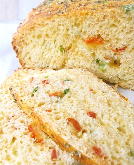 There's nothing like the savory/smooth flavor of cheese to cut through empty carbs, and soothe the sugar-sated heart. Christmas Cheese Bread, a Parmesan-scented quick bread studded with sun-dried tomatoes and scallions, has been a favorite of mine for years.