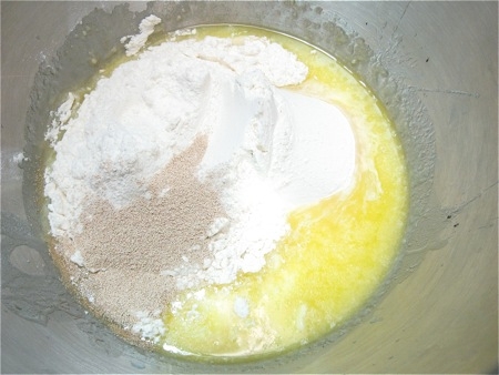 Add 2 cups (241g) King Arthur Unbleached All-Purpose Flour, and 1 1/2 teaspoons instant yeast.
