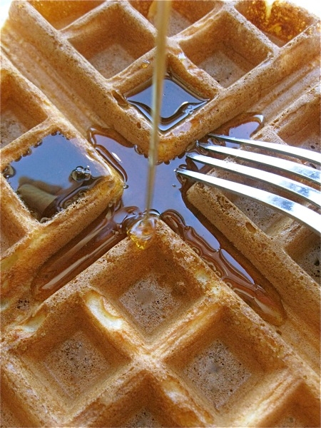 *Our taste testers were evenly divided on this one. Some of them liked the touch of maple in the waffle; some preferred the standard unsweetened version. I will say that adding syrup seems to give the waffles more of a yeasty/fermented flavor. Up to you.