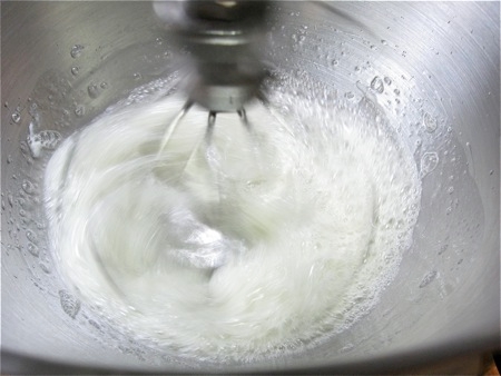 Beat until the whites are very foamy, and a soft peak forms when you lift the whisk out of the whites.