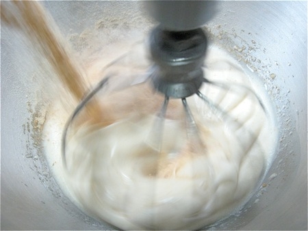 Beat at high speed, using your mixer's whisk attachment, if possible.
