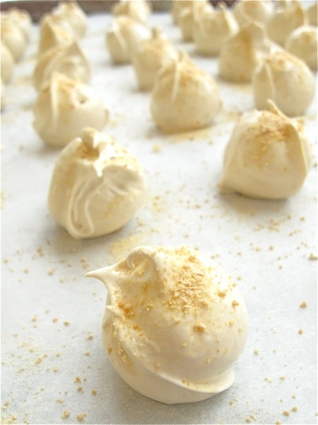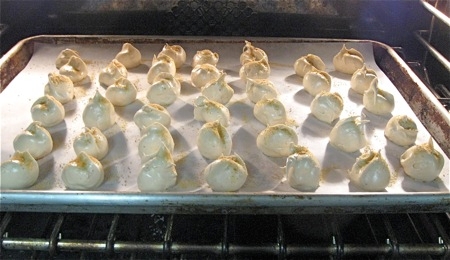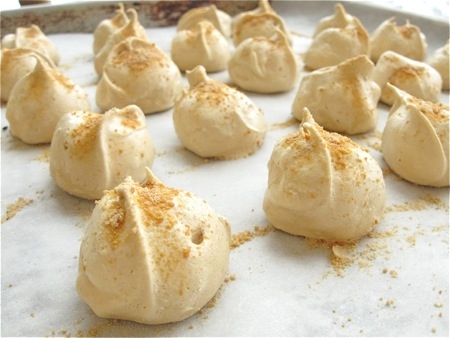 Remove the meringues from the oven. As you can see, they've darkened just a bit.