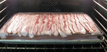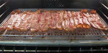 Bake the bacon in a preheated 350°F oven for 30 to 40 minutes, until it's as done as you like.