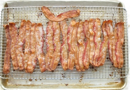 The very easiest way to cook bacon is in the oven. Line a baking sheet with parchment, for easy cleanup; set a rack on top. Lay bacon on the rack, trying not to overlap the slices too much.