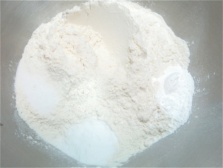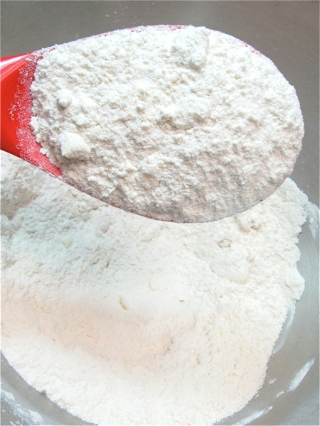 White flour is white, right? Well, not all flour is pure white, as you may be able to see in the picture above. Compared to the Bakewell Cream and baking soda in the photo, our flour is off-white; a lovely cream color.