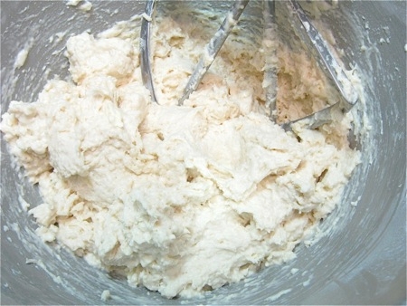 Add 1 cup (227g) cold milk or cold buttermilk, stirring to make a sticky dough.