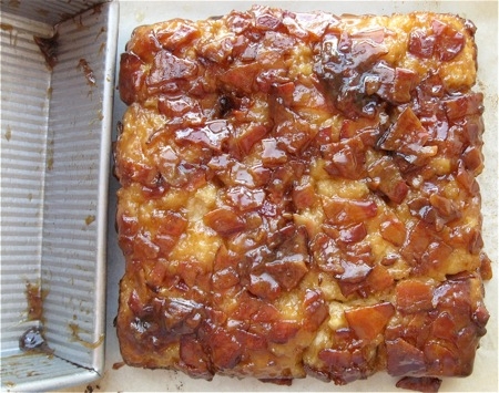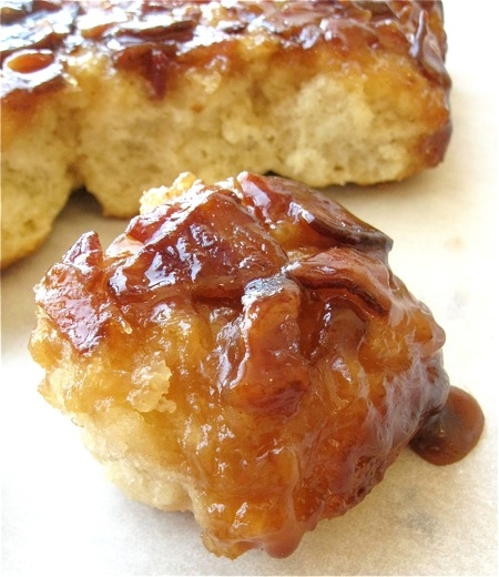 Immediately turn the pan over onto a serving plate. Lift it off, and scrape any syrup left in the pan onto the biscuits.