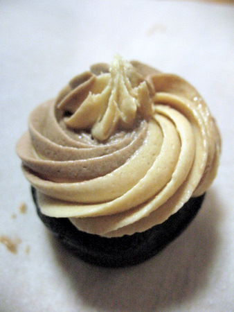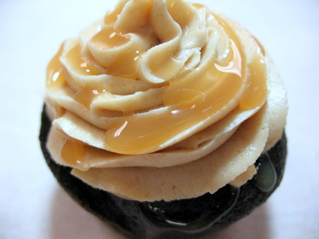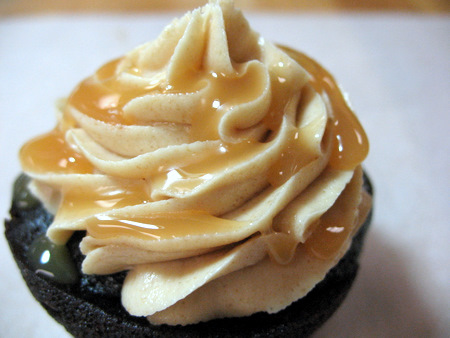 Think of the taste possibilities here. A bite of just chocolate and chocolate, a lick of salty vanilla caramel, nibbling around the edge for an ever-changing sensation. I think I need some quality time with this cupcake.