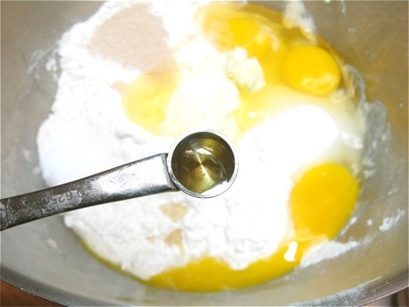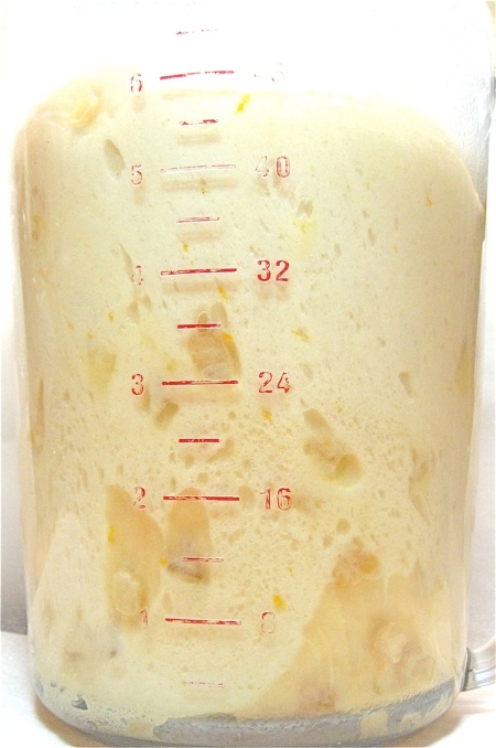 Add the following to the bubbly starter in the bowl: