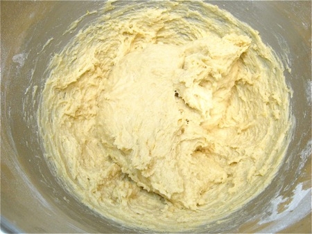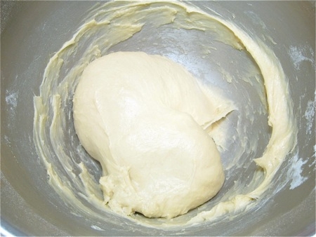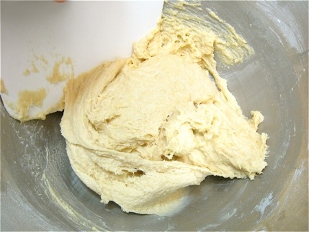 By the end of the kneading time, the dough should have become elastic and satiny. It should be starting to leave the bottom and sides of the bowl, though it won't form a smooth ball.