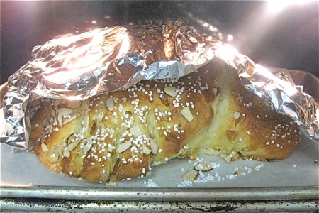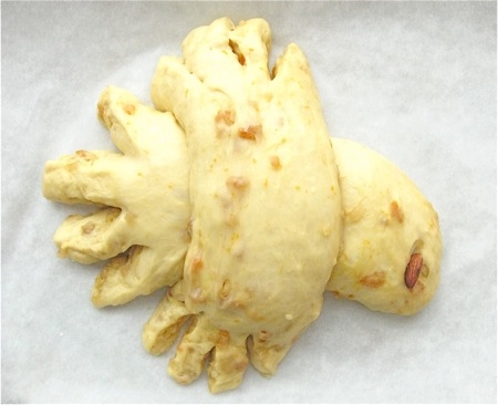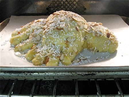There are dove pans, both paper and metal, that are supposed to give this loaf a distinctive, dove-like shape. But even baking this bread in a shaped pan results in a wavy, misshapen cross, more blob than bird.