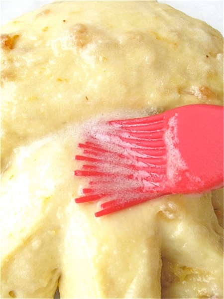 Brush the risen loaf with the glaze. Be generous; there's plenty to go around.
