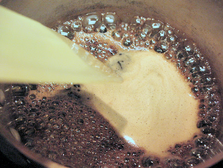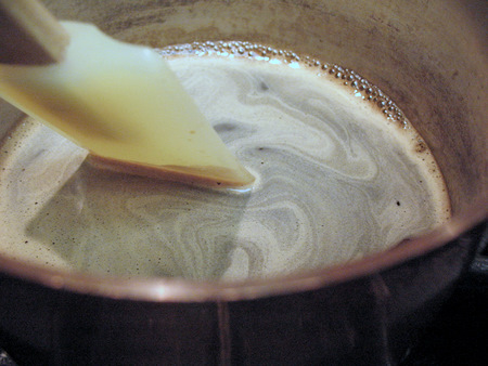 Bring to a full rolling boil, remove from the heat and add in 1/4 cup (57g) Kahlua or amaretto liqueur. Set aside to cool to lukewarm.