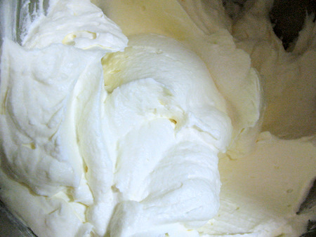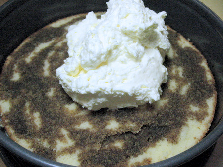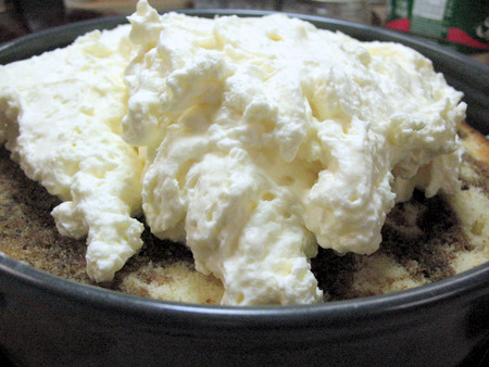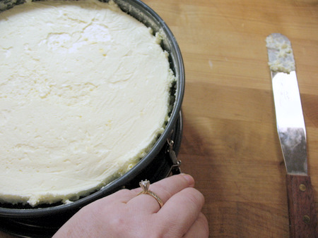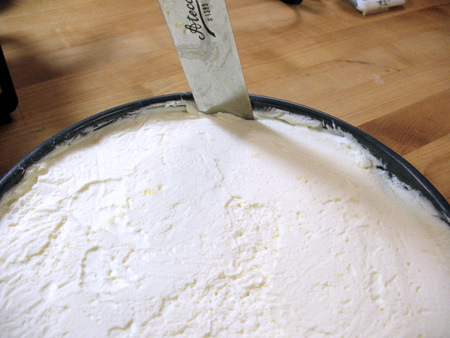 Unlatch and remove the springform ring. The cream should be well set and stand tall all on its own.