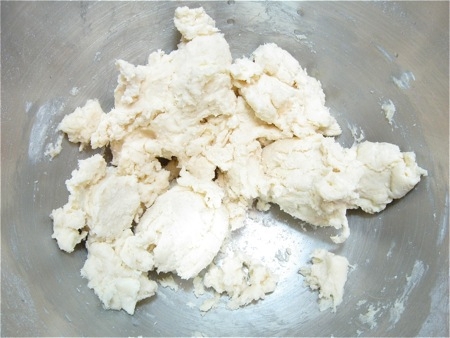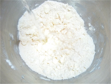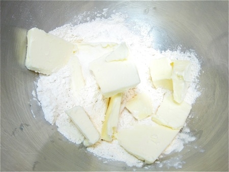 Work the butter into the flour until the mixture is unevenly crumbly. That means it's OK to leave some bigger chunks of butter.