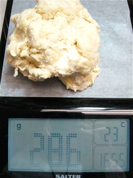 Since you're going to divide the dough in half, it helps to weigh it. But don't worry too much; if you don't have a scale, just eyeball it.