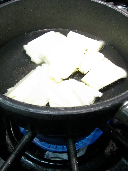Heat the water and butter over medium heat until the butter melts, and the mixture comes to a boil.