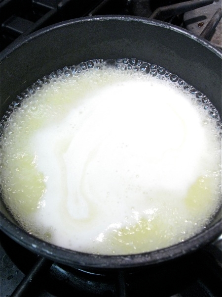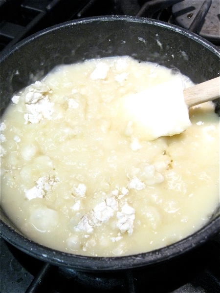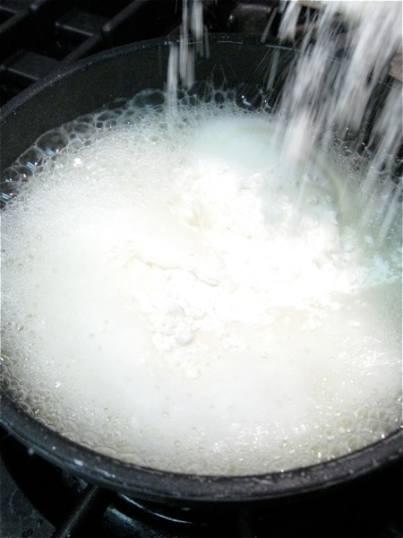 Immediately start stirring; the mixture will be lumpy. That's OK; keep stirring.