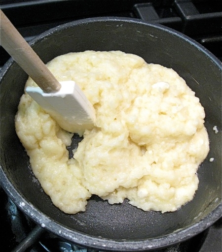 Keep stirring until the dough starts to leave the sides of the pan, like this.